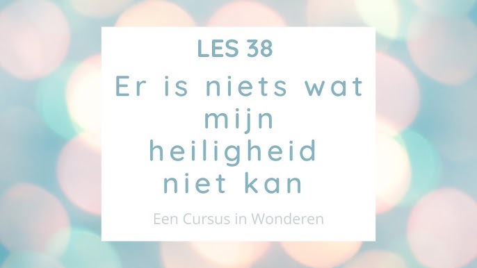 Dat maakt les 38 minder spectaculair dan sommigen hopen, maar ook veel radicaler. De les belooft geen macht over de wereld, geen vermogen om vorm naar believen te manipuleren. Ze wijst op iets anders: dat waar heiligheid volledig wordt toegelaten, geen enkele vorm van angst, schuld of conflict kan blijven bestaan. En omdat de wereld zoals wij die ervaren uit die conflicten is opgebouwd, kan de wereld daar niet onveranderd blijven.