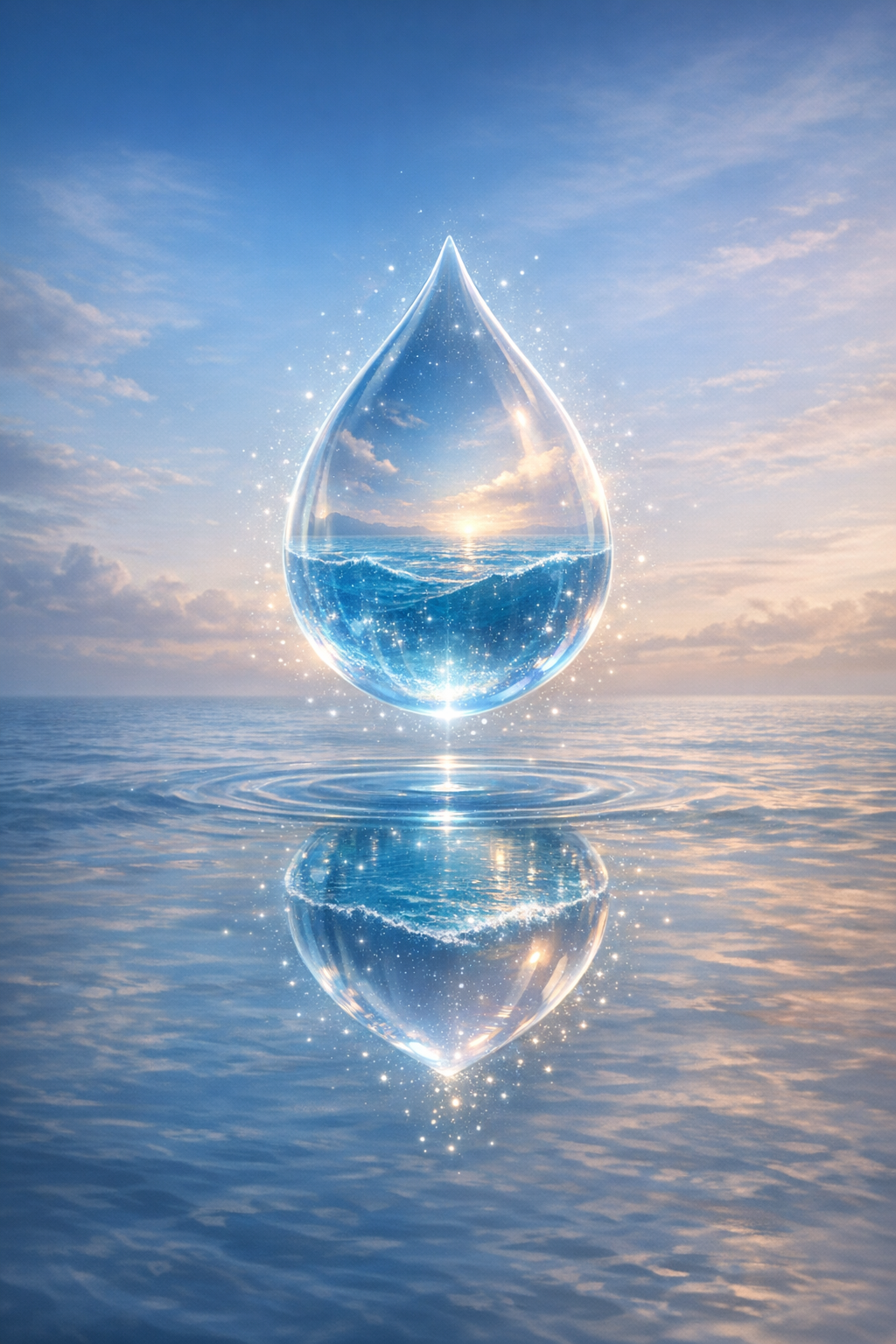 Misschien helpt een beeld om deze spanning te verzachten. Er wordt wel gezegd dat de mens een druppel is die zich afgescheiden waant van de oceaan, en dat verlichting betekent dat de druppel terugkeert in de zee. Maar dit beeld kan onbedoeld een verlies suggereren—alsof individualiteit oplost in een onpersoonlijke totaliteit. Een subtieler beeld is dat de druppel nooit los is geweest, en dat zij in zichzelf de hele oceaan draagt. Niet als metafoor, maar als werkelijkheid. Zoals een hologram waarin elk deel het geheel bevat. In dat licht is de ander niet een “andere” in de gebruikelijke zin, maar ook geen leeg beeld. Hij is een unieke uitdrukking van het geheel, waarin jij het geheel opnieuw kunt herkennen.